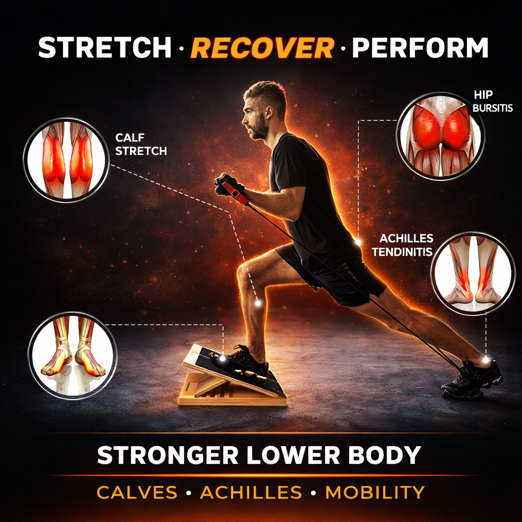Improve flexibility and mobility with the FlexStretch™ Adjustable Wooden Slant Board, designed for controlled incline stretching and progressive training.