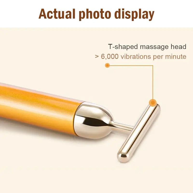 GlowSculpt™ 24K Beauty Bar delivers gentle micro-vibrations to lift, tighten, and rejuvenate your skin. The T-shaped 24K gold-plated head enhances circulation, boosts elasticity, and reduces puffiness for a youthful, radiant glow. Compact and portable for daily facial care anytime, anywhere.